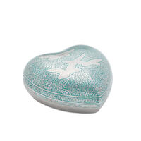 This beautifully crafted large adult urn features the Birds Returning Home motif, symbolising peace, love, and eternal rest. Designed to hold the full ashes of an adult, this urn has a generous 3.4lt capacity. Expertly made from solid brass and finished in elegant silver nickel, it showcases three birds in graceful flight, intricately etched on the front. The rich teal green and blue enamel background adds a sense of depth and tranquillity, making this urn a dignified and heartfelt tribute to a loved one’s memory.