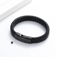 • Braided black leather bracelet with black stainless steel clasp closure