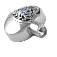 A lovely heart pendant with en etched design on one side. The design is accented with blue diamantes and has a black background. This solid pendant is made from stainless steel and finished in a silver tone. A small recess enables you to enclose a few grains of your loved one's ashes.