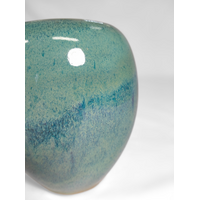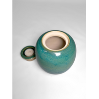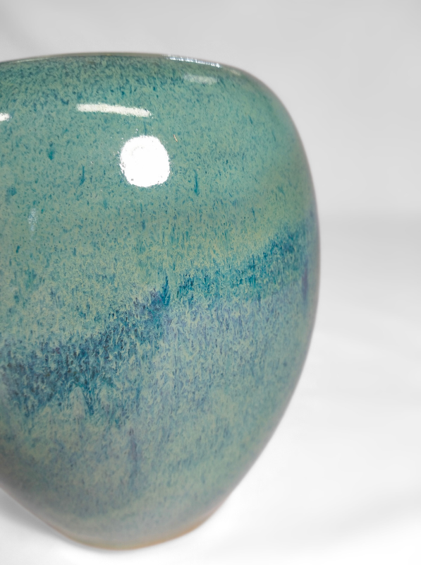 A beautiful ceramic candle urn hand-thrown by West Australian artist, Hayley Bangham of Conscious Clay. This urn is hand glazed in the Earth Element palette. Earth is reminiscent of a landscape painting. Countryside greens run into gentle swirling patterns of soft white, purple, and blue glazes.
