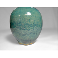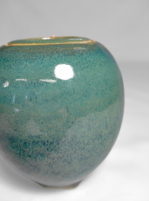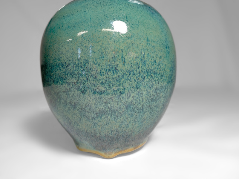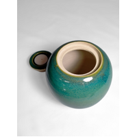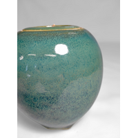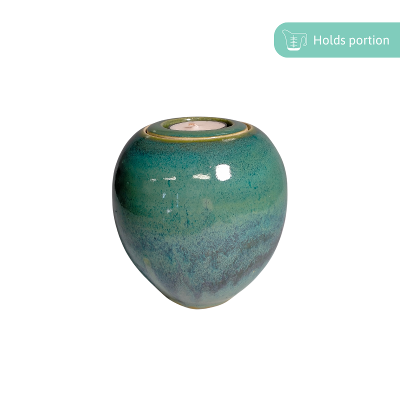 A beautiful ceramic candle urn hand-thrown by West Australian artist, Hayley Bangham of Conscious Clay. This urn is hand glazed in the Earth Element palette. Earth is reminiscent of a landscape painting. Countryside greens run into gentle swirling patterns of soft white, purple, and blue glazes.