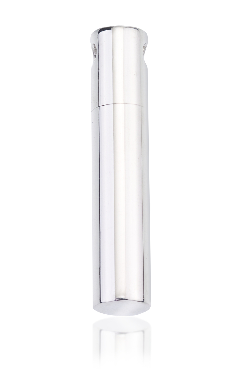A lovely cylinder pendant with a sleek design. This solid pendant is made from 925 silver. A small recess enables you to enclose a few grains of your loved one's ashes.