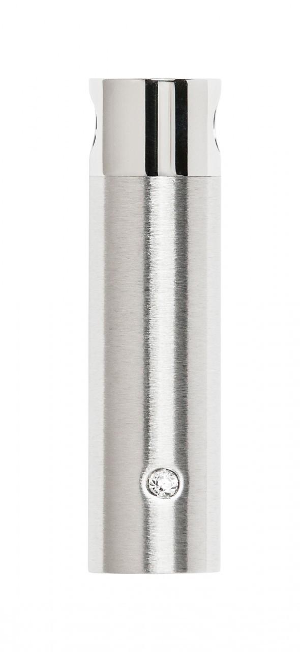 This beautiful cylinder pendant has a single diamante for a minimal look. This solid pendant is made from stainless steel and finished in a silver tone. A small recess enables you to enclose a few grains of your loved one's ashes.