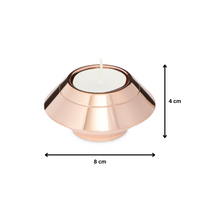 A gorgeous Rose Gold  Tone Stainless Steel Keepsake Candle Urn. Perfect for keeping a small momento of your loved one - such as soil or sand from a special location, a lock of hair, dried flower petals, a special note or a portion of cremation ashes. The threaded lid houses a tealight candle.