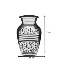 This stunning Silver Acorn Keepsake Urn is made from solid brass. Silver nickel is plated over the brass and holds an intricate acorn leaf pattern. This keepsake is perfect for keeping a small memento of your loved one - such as soil or sand from a special location, a lock of hair, dried flower petals, a special note, or a portion of cremation ashes. This keepsake fits nicely into the palm of your hand, is very well made, and requires no maintenance.