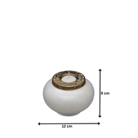 This stunning White and Gold Candle Urn - Keepsake is made from solid brass. A keepsake is perfect for keeping a small momento of your loved one - such as soil or sand from a special location, a lock of hair, dried flower petals, a special note or a portion of cremation ashes.The white enamel coating has a natural soft hammer pattern running in circles around the body of the urn. The lid is made from gold nickel, features a beautiful mandala pattern and houses a tealight candle. This cremation urn requires no maintenance, is very well made and is heavy in weight.