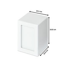 Beautiful white timber veneered, cremation photo urn. This urn features a space to place a photo of your loved one, which can be easily changed as the photo and ash compartments are separate. The frame is finished with clear coat lacquer finish.